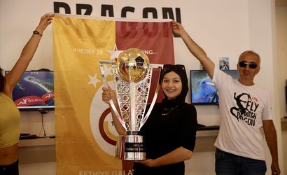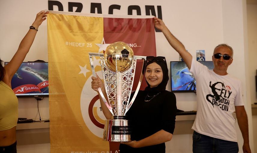 Galatasaray'ın şampiyonluk kupası Muğla'nın Fethiye ilçesinde yamaç paraşütüyle uçuruldu. Uçuşun ardından vatandaşlar ve yamaç paraşütü pilotları kupayla hatıra fotoğrafı çektirdi.