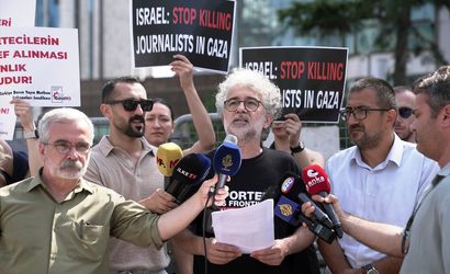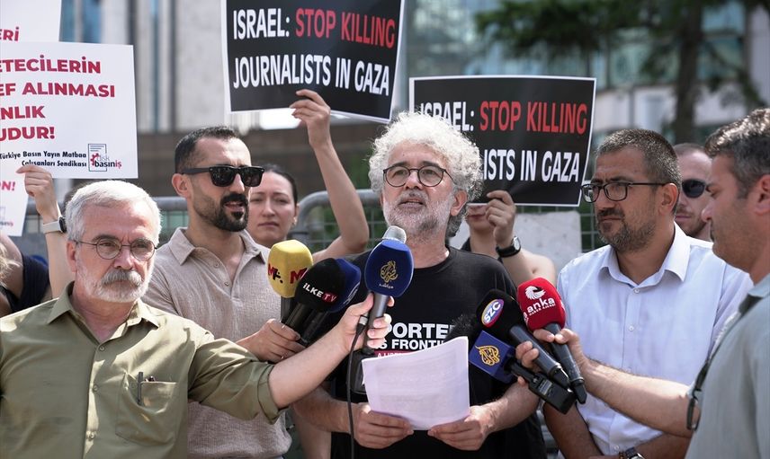 İsrail'in İstanbul Başkonsolosluğu önünde bir araya gelen basın meslek örgütlerinin üyeleri, İsrail'in Filistin'de görev yapan gazetecilere yönelik hak ihlallerini protesto etti. Türkiye Gazeteciler Cemiyeti, Sınır Tanımayan Gazeteciler, Türkiye Gazeteciler Sendikası ve DİSK Basın-İş'e üye bir grup basın mensubu, Gazze'de gazetecilerin karşı karşıya bulunduğu duruma tepki göstermek amacıyla Levent'teki başkonsolosluk önünde toplandı. Sınır Tanımayan Gazeteciler Türkiye Temsilcisi Erol Önderoğlu, grup adına hazırlanan basın açıklamasını okudu.