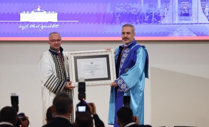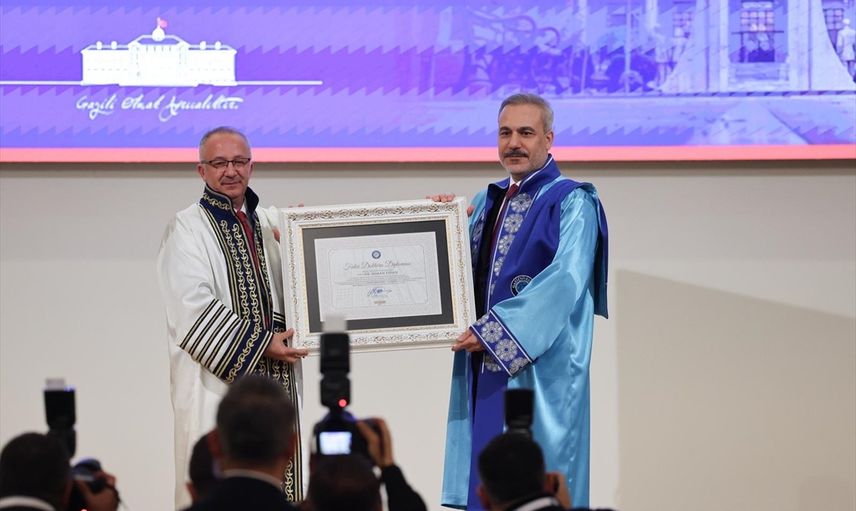 Dışişleri Bakanı Hakan Fidan, Gazi Üniversitesi’nin 2025-2026 Akademik Yılı Açılış Törenine katıldı. Tören kapsamında Gazi Üniversitesi Rektörü Prof. Dr. Uğur Ünal tarafından Bakan Fidan'a tarih alanında fahri doktora ünvanı tevdi edildi.