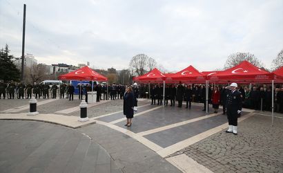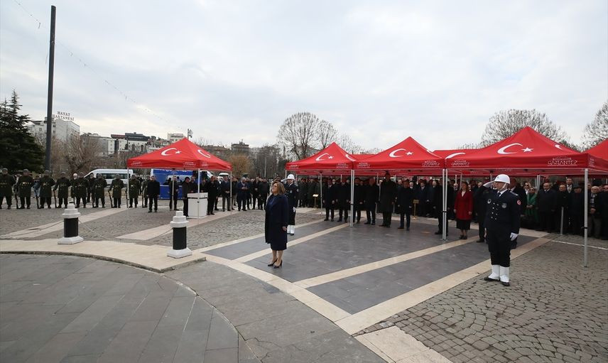 Tören, saygı duruşunda bulunulması ve İstiklal Marşı'nın okunması ile başladı. Ardından, Şehitler Anıtı'na çelenk sunuldu.