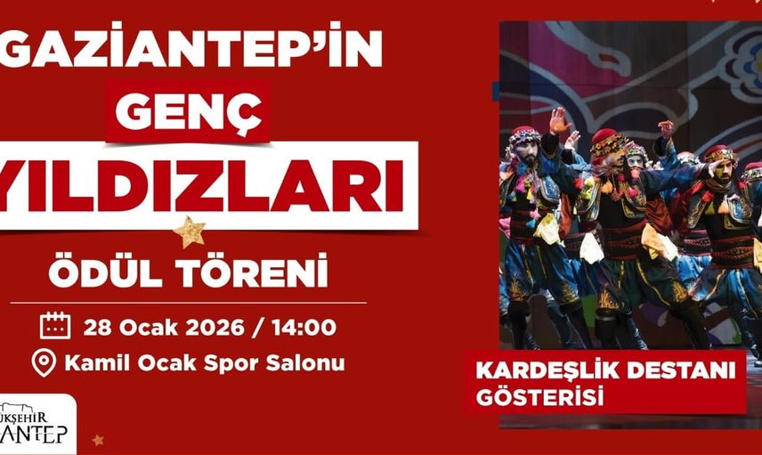 Gaziantep Büyükşehir Belediyesi tarafından düzenlenen Genç Yıldızları Ödül Töreni, kentte spor, sanat, bilim ve toplumsal birlikteliği aynı platformda buluşturmayı hedefliyor. Etkinlik kapsamında Gazi Oyunları'nda dereceye giren sporcular ile TEKNOFEST'te başarılı olan gençlere ödülleri takdim edilecek.