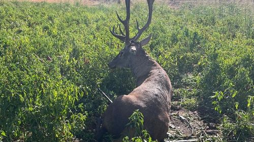 Gaziantep İslahiye'de biber tarlasındaki sulama hortumuna dolanan koruma altındaki erkek yaban geyiği, çiftçi ve ekiplerin müdahalesiyle kurtarıldı ve doğal ortamına bırakıldı.