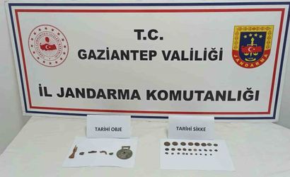 Gaziantep İl Jandarma Komutanlığı ve adli makamların koordinasyonunda yürütülen operasyonda, Nizip ilçesinde bir araçta yapılan aramada 28 adet tarihi eser niteliğinde sikke ile 6 adet metal obje ele geçirildi. Olayla ilgili M.T., E.T. ve M.R.T. isimli şahıslar gözaltına alındı.