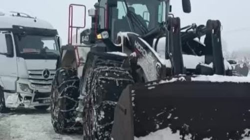 Gaziantep-Nurdağı D-400'de kar saplanan tır trafiği durdurdu, yol 2 saat sonra açıldı