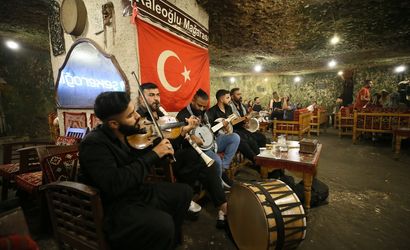 Gaziantep'te Tarihi Yeni Han'daki yaklaşık 500 yıllık Kaleoğlu Mağarası'nda ziyaretçi yoğunluğu yaşanıyor. Hava sıcaklığının 35 dereceyi aştığı Gaziantep'te kent sakinleri ve ziyaretçiler, kafe olarak kullanılan mağarada serinliyor.