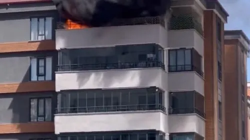Gaziantep'te 8 katlı binanın en üst katında çıkan balkon yangını söndürüldü