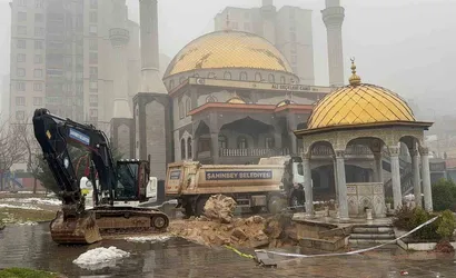 Gaziantep'te Ali Erçelebi Cami avlusunda yağış sonrası çökme