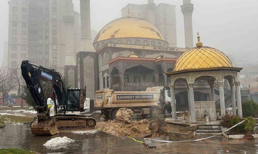Gaziantep'te iki gündür aralıklarla etkili olan sağanak, Şahinbey ilçesi Nuripazarbaşı Mahallesi'nde bulunan Ali Erçelebi Caminin avlusunda çökme oluşturdu. Çökme, yağışın zemini yumuşatması sonucu avludaki şadırvan kısmında meydana geldiği öğrenildi.