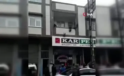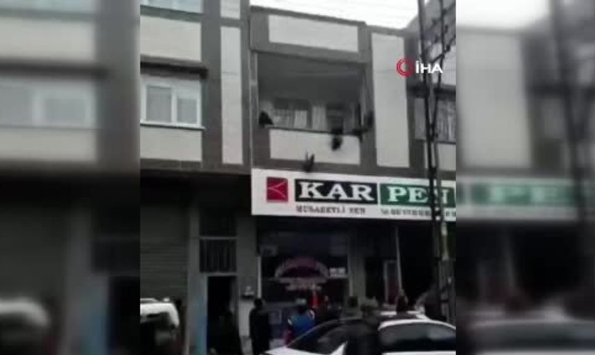 Gaziantep'te yürekleri ağza getiren an: Balkonda asılı kalan çocuğu kurtardı