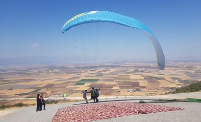 Gaziantep'in Nurdağı ilçesinde, bedensel engelli 21 yaşındaki Nisanur Arapoğlu'nun yamaç paraşütüyle uçma hayali gerçeğe dönüştü.