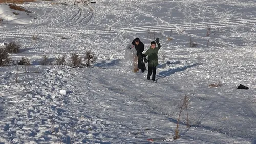 Gaziantep'te yoğun kar sonrası çocuklar boş arazide tepsi, poşet ve leğenlerle kayarak oynadı; kent merkezinde 30, kırsal alanlarda 50 cm'i aşan kar etkili oldu.