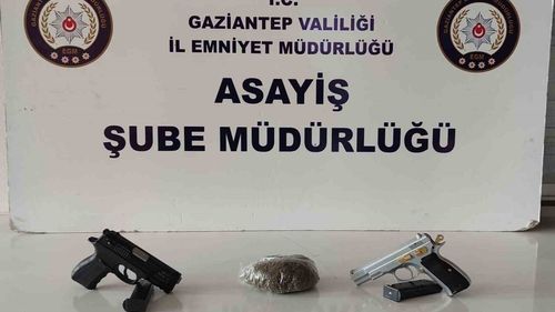 Gaziantep'te iki iş yerine silahla ateş eden şahıslara yönelik operasyonda 5 şüpheli, 2 ruhsatsız tabanca ve 84.66 gram uyuşturucu ele geçirildi.