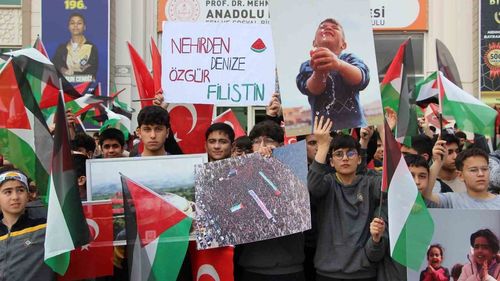 Gaziantep'te imam hatip öğrencileri, Mescid-i Aksa'nın kapatılmasını ve Filistinlilere yönelik idam kararını okul bahçesindeki basın açıklamasıyla kınadı.