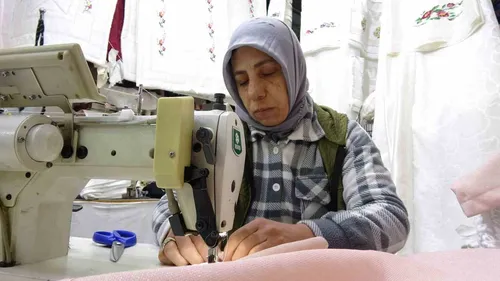 Gaziantep'te kadın terzi Güllü Yavuz, veresiye aldığı makinelerle atölyesini kurdu