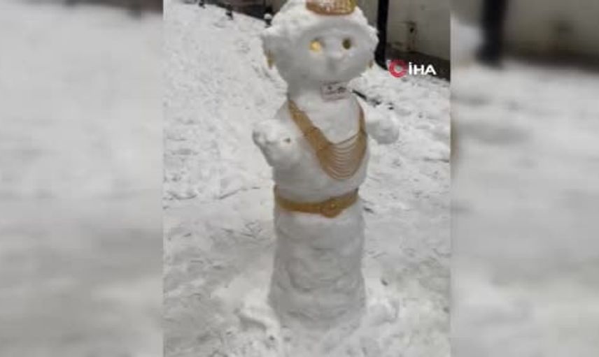 Nizip ilçesinde ise bir kuyumcu, kar yağışı nedeniyle müşteri gelmeyince iş yerinin önüne yaptığı kardan gelini altınlarla süsledi. Boynuna bilezikler ve kolyeler takılan kardan gelin, vatandaşların ilgisini çekerken ortaya renkli görüntüler çıktı.