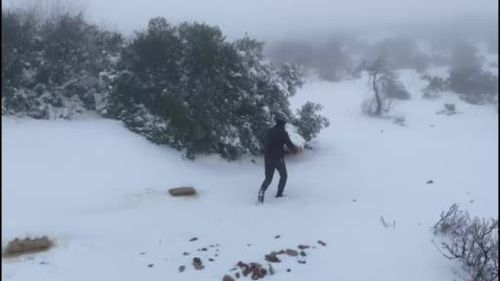 Gaziantep’te karlı havada aç kalan yaban hayvanları için Sof Dağı’na 300 kilo yem bırakıldı