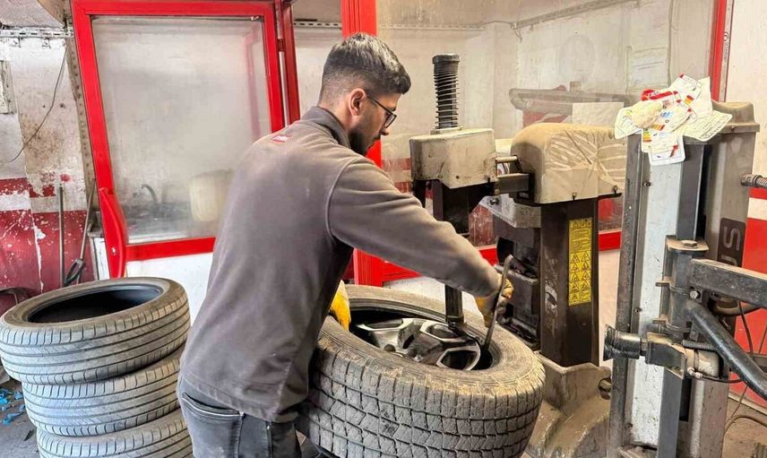 Gaziantep'te kış lastiği uygulamasıyla lastikçilerde artan yoğunluk