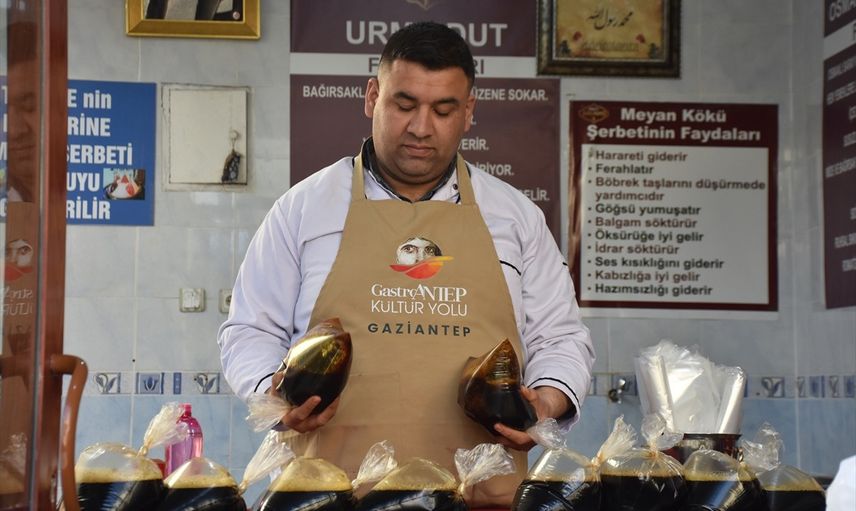 Fırat Nehri kenarında yetişen meyan bitkisinin köklerinden yapılan meyan şerbeti, özellikle Ramazan ayında sıkça tercih ediliyor. UNESCO'nun gastronomi dalında "yaratıcı şehirler" listesinde yer alan Gaziantep'te, Ramazan sofraları birbirinden lezzetli yemeklerle dolup taşıyor.