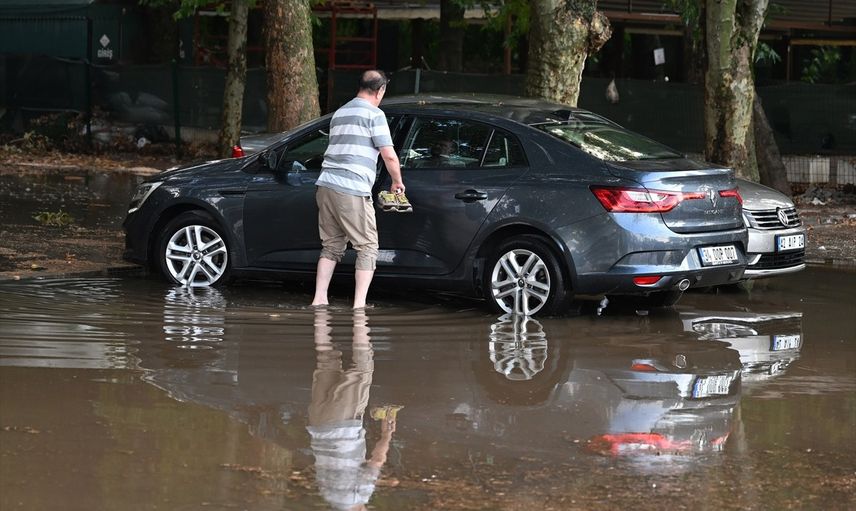 Gaziantep'te öğle saatlerinde hava sıcaklığının 40 dereceye ulaşmasının ardından, akşam saatlerinde etkili olan sağanak yağış, birçok cadde ve sokakta su birikintilerine yol açtı.