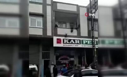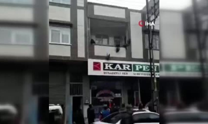 Gaziantep'te balkonda asılı kalan çocuğun kurtarılması
