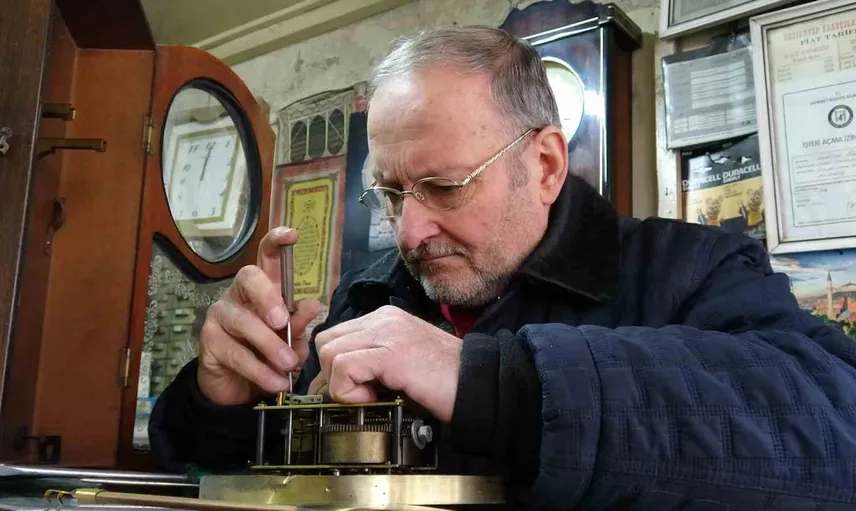 Yarım asırdır "tik tak" sesleri ve akreple yelkovanın kovalamacasına tanıklık eden usta, yıllardır yaptığı işi ayakta tutmaya çalışıyor ve mesleğin giderek arka planda kaldığını belirtiyor.