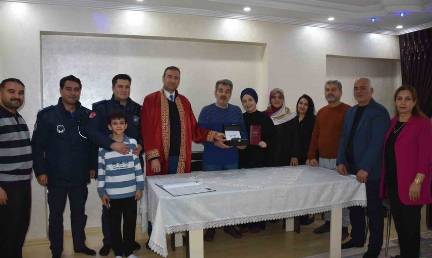 Şahinbey ekipleri, ulaşım sorunu yaşayan çifti evinde ziyaret ederek töreni gerçekleştirdi