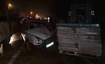 Gaziantep'in Karkamış ilçesi Alaçalı Mahallesinde meydana gelen kazada, iddiaya göre güzergah üzerinde yük indirirken aniden yola çıkan forklifte seyir halindeki 27 PZ 876 plakalı otomobil çarptı.