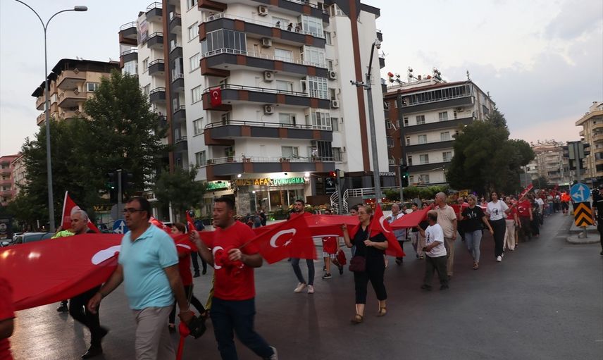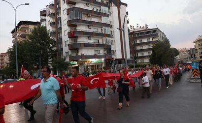 Kilis'te 30 Ağustos Zafer Bayramı dolayısıyla Hacı Mustafa Cümbüş Camisi önünde toplananlar, ellerindeki Türk bayrakları ve meşalelerle Cumhuriyet Meydanı'na yürüdü.