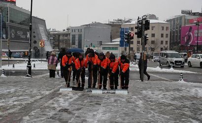 Yayaların güvenliğini sağlamak amacıyla meydanlar, kaldırımlar, park ve yeşil alanlarda biriken karlar düzenli olarak temizleniyor. Belediye ekipleri, özellikle vatandaşların yoğun olarak kullandığı duraklar, cami önleri ve yürüyüş yolları gibi noktalarda küreme çalışmalarını aralıksız sürdürüyor.