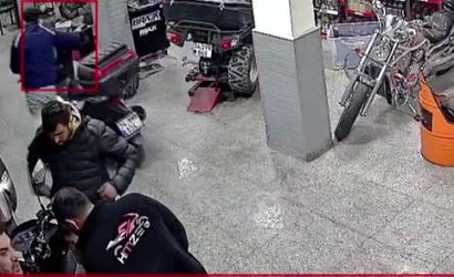 İSTANBUL GAZİOSMANPAŞA’DA TAMİRHANEDE TAMİR EDİLMEYE ÇALIŞAN MOTOSİKLET BİR ANDA YANMAYA BAŞLADI. YANGIN, TAMİRCİLER TARAFINDAN SÖNDÜRÜLÜRKEN; ÇALIŞANLARIN KAÇIŞTIĞI ANLAR GÜVENLİK KAMERASINA YANSIDI.