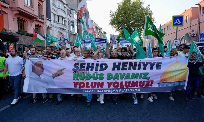 Özgür-Der Genel Başkanı Rıdvan Kaya, yapılan yürüyüşte Filistin’in direnişine dikkat çekerek, "Filistin halkının kahraman evladını unutmadık. Müslümanların, merhum İsmail Heniyye'nin çağrısıyla sokaklara döküldüğünü görüyoruz. Bu olaylar, mallarıyla, canlarıyla Allah yolunda cennet için mücadele eden yiğitlerin varlığını gösteriyor. Tüm dünyayı çaresiz hissettirmeye çalışan stratejik bir plan var. Bizim vazgeçmeyeceğimiz tek şey zulmü lanetlemek olmalı" dedi.