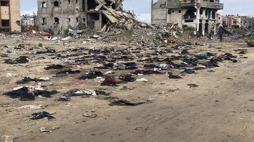 Gazze'de İsrail'in alıkoyduğu Filistinlilerin geride bıraktığı kıyafetler, acı dolu bir tablo oluşturuyor.
