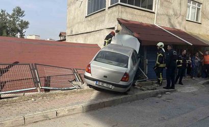Gebze'de direksiyon hakimiyetini kaybeden otomobil park halindeki araca çarpıp evin çatısına çıktı