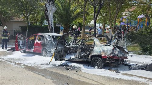 Gebze Tatlıkuyu Mahallesi'nde park halindeki iki otomobilde çıkan yangın, patlama da yaşanarak araçların kullanılamaz hale gelmesiyle sonuçlandı.