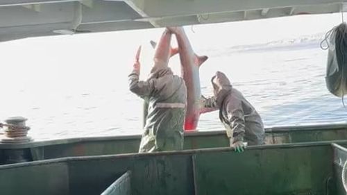 Gelibolu açıklarında ağlara takılan 2 'kamçı kuyruk' köpek balığı denize geri bırakıldı