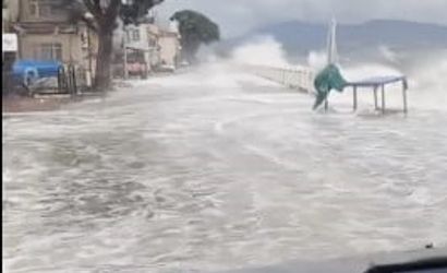 Şehir merkezi yanı sıra ilçe genelinde de hissedilen fırtına nedeniyle, özellikle Gemlik merkez ile Narlı ve Kurşunlu mahallelerinde deniz kara ile birleşti.