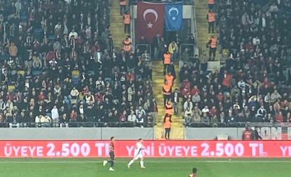 GENÇLERBİRLİĞİ TARAFTARLARI, RAMS BAŞAKŞEHİR MÜSABAKASINDA MARATON TRİBÜNÜNE DOĞU TÜRKİSTAN BAYRAĞI ASTI.
