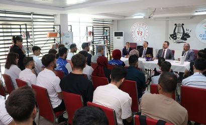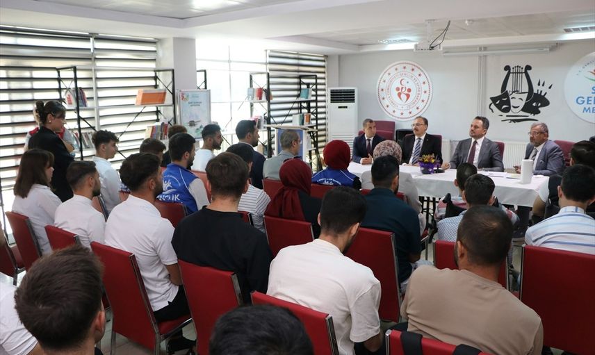 Gençlik ve Spor Bakan Yardımcısı Enes Eminoğlu (sağda), Siirt'te gençlerle bir araya geldi. Eminoğlu ve Siirt Valisi Kemal Kızılkaya (solda), gençlerin taleplerini dinledi.