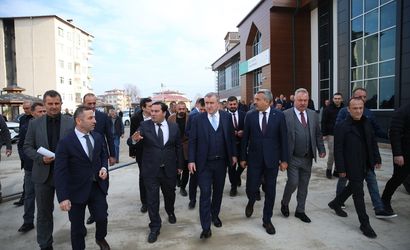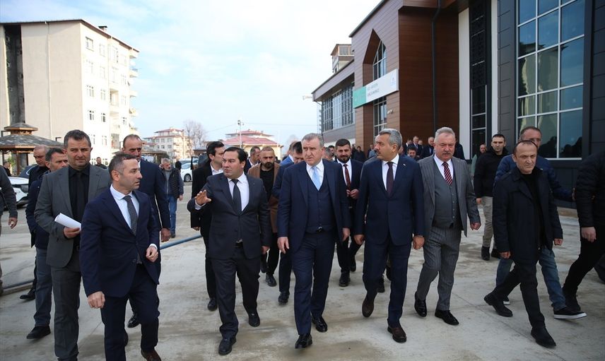 Gençlik ve Spor Bakanı Osman Aşkın Bak (sol 3), Rize'nin Ardeşen ilçesindeki gençlik merkezi ve havuz inşaatında incelemelerde bulundu.