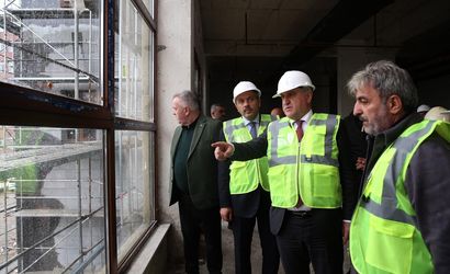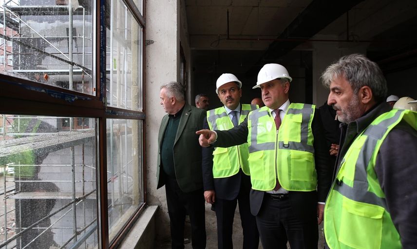Gençlik ve Spor Bakanı Osman Aşkın Bak (ortada), Rize'de yapımı süren iki öğrenci yurdu inşaatında inceleme yaptı. Bakan Bak, çalışmalara ilişkin yetkililerden bilgi aldı. Bakan Bak'a, Vali İhsan Selim Baydaş (sağda) eşlik etti.