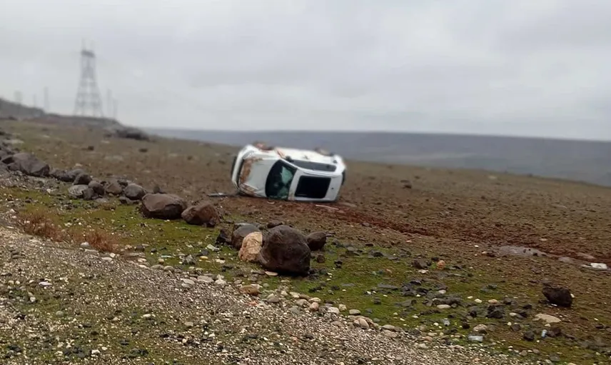 Gercüş'te otomobil araziye yuvarlandı; sürücü yara almadan kurtuldu