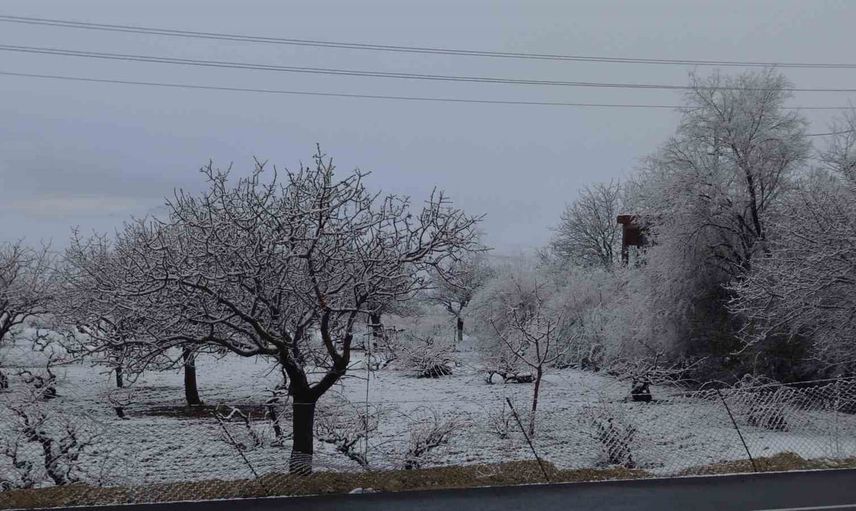 İlçe merkezinde ve çevresinde etkili olan yağış, vatandaşlara karla uyanma görüntüsü sundu