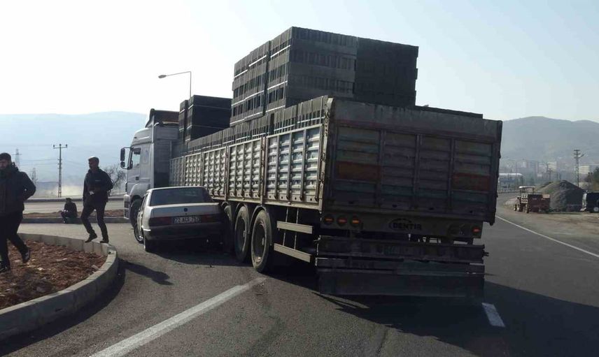 Batman’ın Gercüş ilçesinde kavşakta dönüş yapan bir tırın otomobile çarpması sonucu kaza meydana geldi. Edinilen bilgilere göre, otomobil çarpmanın etkisiyle tırın dorsesinin altında kaldı.