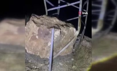 Batman'ın Gercüş ilçesine bağlı Aydınlı Mağaralı köyünde gece saatlerinde yamaçtan kopan bir kaya, yerleşim içindeki bir elektrik direğine çarparak durdu. Direğin kayanın ilerlemesini engellemesi, olası bir felaketin önüne geçti.