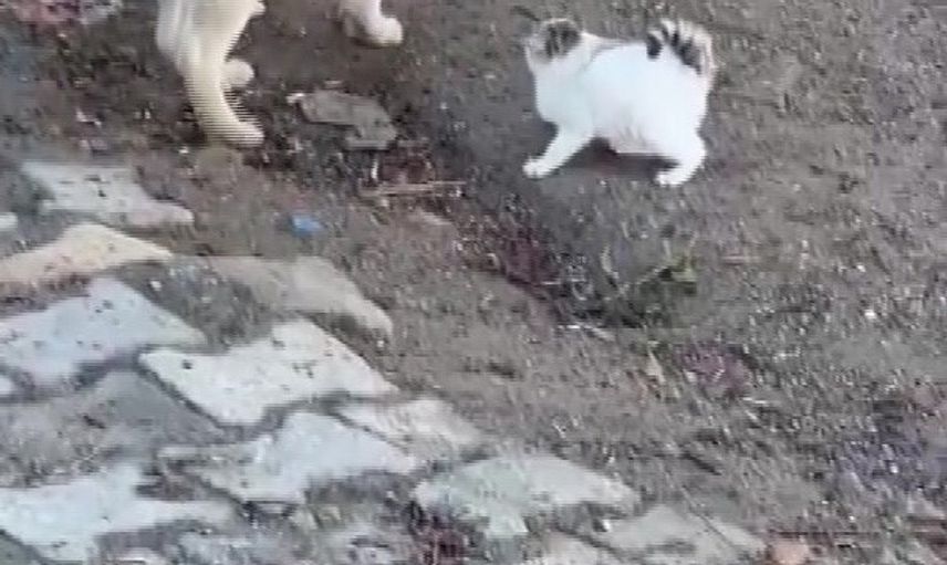 Gercüş'te yavru kedi ve yavru köpeğin sevimli kavgası kaydedildi