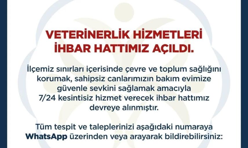 Yeni uygulama kapsamında ilçe genelinde karşılaşılan çevre ve toplum sağlığını tehdit eden durumlar ile sahipsiz hayvanlara ilişkin tespit ve talepler, vatandaşlar tarafından doğrudan ihbar hattına iletilebilecek. Yapılan bildirimler doğrultusunda ekipler, sahipsiz canların güvenli bir şekilde belediyeye ait bakım evine sevkini sağlayacak.