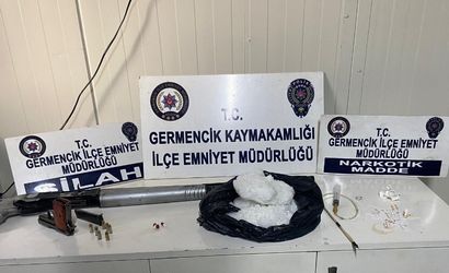 Germencik İlçe Emniyet Müdürlüğü ekipleri tarafından yürütülen çalışmada, Reisköy Mahallesi'nde şüphe üzerine durdurulan bir kişiye yönelik yapılan müdahalede ve gerçekleştirilen ikamet aramasında çok sayıda uyuşturucu madde ile silah ele geçirildi.