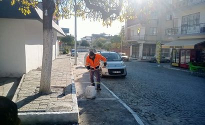 Germencik'te Pazarkuran Meydanı'nda kireçleme ve ağaç budama çalışması