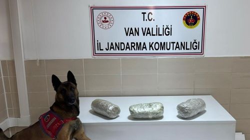 Van'ın Gevaş ilçesinde jandarma yol kontrolünde durdurulan araçta narkotik köpeğinin tepki vermesi sonucu 3 kilogram esrar ele geçirildi, iki şüpheli gözaltında.
