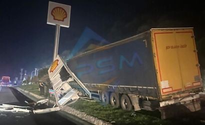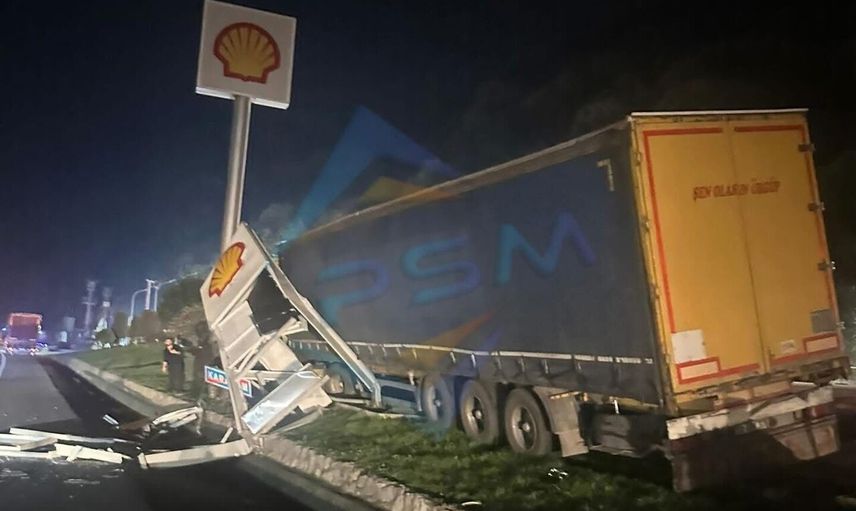 Olayda, sürücünün direksiyon hakimiyetini kaybetmesi sonucu tırın önce yön tabelasına çarptığı, ardından aynı güzergahtaki akaryakıt istasyonuna girdiği belirtildi.